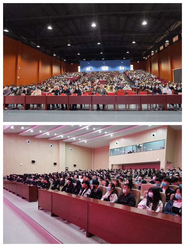报告中,王长海分享了他临危受命、驰援武汉,与病毒展开殊死较量、与死神竞速的战“疫”经历;讲述了他在抗疫一线,面对困难,身先士卒、勇挑重担、互帮互助、齐心协力、团结协作的动人事迹;讲述了他在武汉抗疫最紧张的时候,曾创下一天查房135人、社区病人筛查100多人、连续工作18小时的“壮举”;讲述了他和战友们进驻武汉东西湖医院,托管武汉太康医院,转战武汉肺科医院,以身作则,冲锋在前,千方百计扩充病房、收治患者,管理6个病区200多张床位,连续奋战65天圆满完成抗疫任务,在战“疫”中向党组织靠拢、向党旗宣誓、光荣加入中国共产党的可歌可泣事迹。他说:“疫情不容小觑,再苦再累也要坚守,真的只为内心的那一点职业信念,为病人和家属那一双双期盼的眼神。”“作为一名医务人员,守护人民群众生命安全和健康是我们的职责,我只是力所能及做了一名医生应该做的。” 简单朴实的话语,彰显出了他在疫情面前的担当和奉献。报告中,王长海还勉励广大学生要做有理想、有担当的新时代青年。