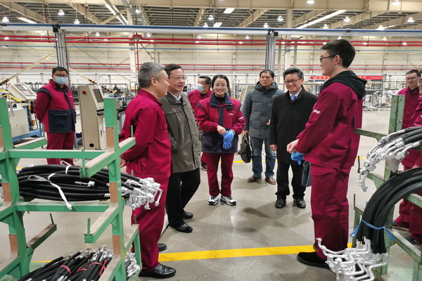 黄远友一行深入江淮汽车制管有限公司生产车间,看望慰问机械工程学院2015届毕业生、技术主管刘云杰和2020届毕业生刘鑫鑫、陈雅洁、张振,特别叮嘱今年刚入职的3位同学要珍惜在国有汽车企业的就业岗位、珍惜人生第一份工作,多向车间老师傅、领导和学长学姐虚心请教,扎根企业、勤学苦练,尽快成长为企业的技术和管理骨干;并勉励大家继续加强外语学习,更好地服务国家“一带一路”倡议和中国汽车企业走向世界。江淮汽车制管有限公司党支部副书记、总经理助理赵建和技术部主任,都对我校毕业生扎实的专业基础、过硬的实践技能和吃苦耐劳的优秀品质给予了充分肯定,希望有中国足彩网的安科优秀学子加盟江淮汽车的未来发展。