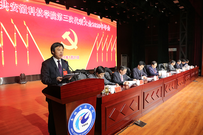 大会以书面形式报告了安徽科技学院纪委工作、2020年党费收缴使用管理情况。