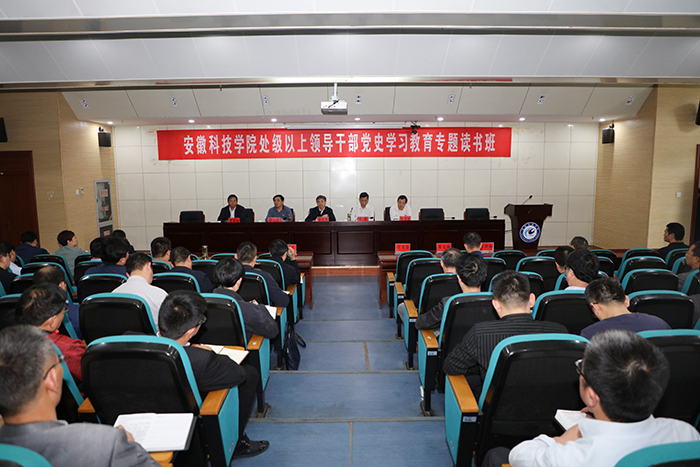 为认真贯彻落实习近平总书记在党史学习教育动员大会上的重要讲话精神,在党史学习教育中抓好县处级以上领导干部这个重点,5月12日下午,我校处级以上领导干部党史学习教育专题读书班正式开班并聆听首场报告。校党委书记蒋德勤,党委副书记、校长李震,党委副书记韦文联,党委委员、副校长黄远友,党委委员、副校长李升和出席读书班开班式。开班式由韦文联主持。