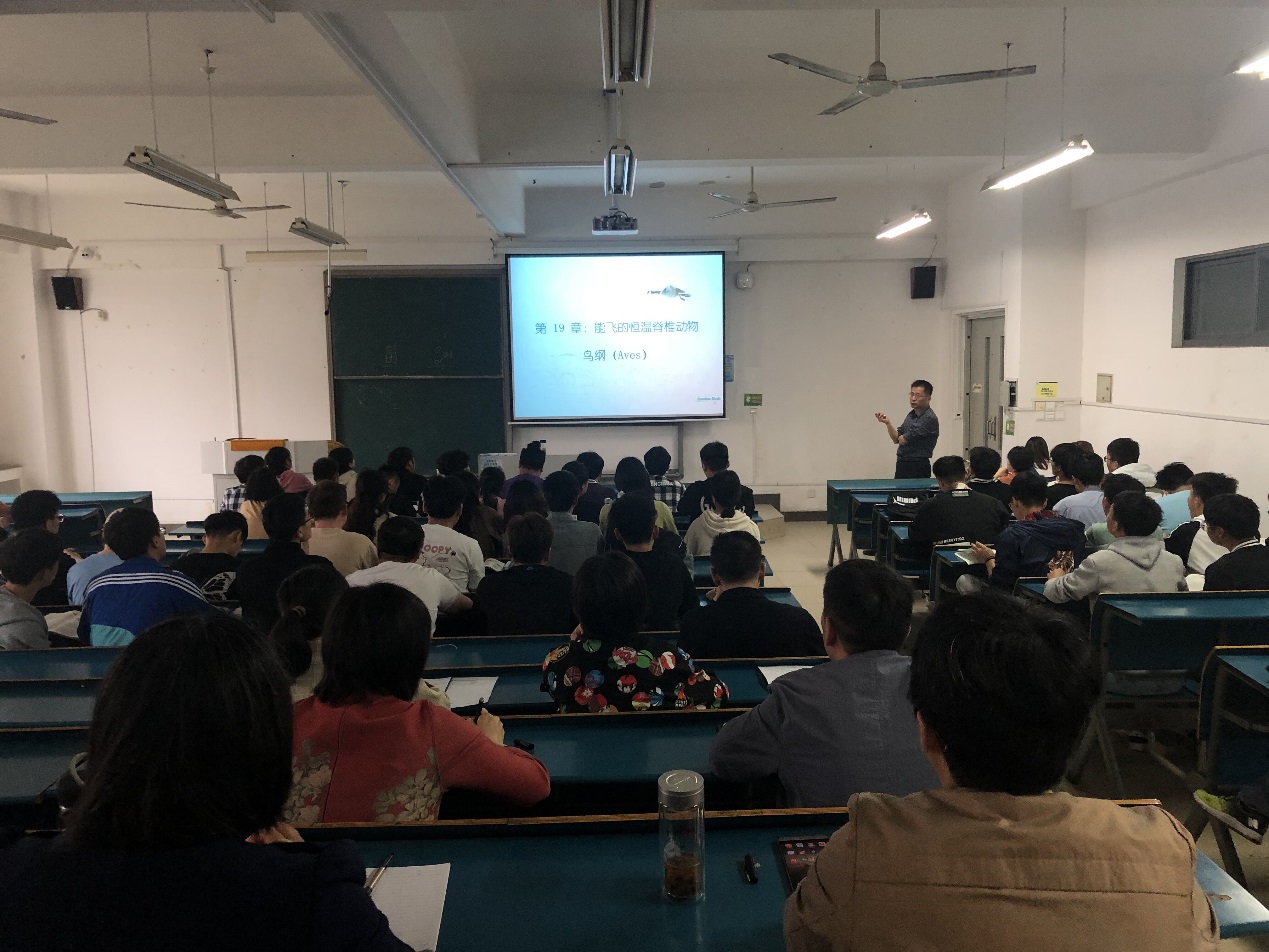 王松教授本次课堂教学的主要内容为《动物学》课程中的“能飞的恒温脊椎动物-鸟纲”。公开课上,王老师先是回顾上一节课程,既夯实学生知识,又巧妙的引出本节课内容,激发学生学习兴趣。随后的主要教学内容,通过深入浅出的讲解,丰富图片的展示,加强学生对课程内容的认识和理解。从生物特征到生活习性,生动幽默的带领大家走进了一个鸟类世界。课程内容精熟,教学投入饱满,语言诙谐幽默,同时又将课程讲授内容与生活实际相结合,极大地调动学生积极性,取得了良好的教学效果。