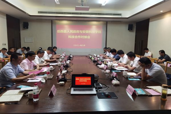何斌介绍了岳西县基本情况及前期合作基础,并指出,安徽科技学院学科齐全、人才聚集、技术领先、成果丰硕,岳西县农业资源丰富,生产基础坚实,双方合作由来已久,并取得了积极成效。何斌强调,这次科技合作对接会对快速提升岳西县自主创新能力将起到极大的促进作用,意义重大,影响深远。岳西县将以本次校地科技合作签约为契机,坚持更高站位,立足更高起点,加强顶层统筹谋划,以推动创新驱动发展和乡村振兴两大战略联动互促为主线,以农业科技成果源头供给结构性调整为切入点,重点聚焦茶桑菜药香榧等5条特色农业产业链,借助我校学科优势和科技力量,推动品种培优、品质提升、品牌打造和标准化生产,大力发展绿色优质农产品生产和乡村特色产业,推动农旅融合发展,引进一批精深加工龙头企业,打造一批休闲农业基地,创建一批国家和省现代农业示范园。