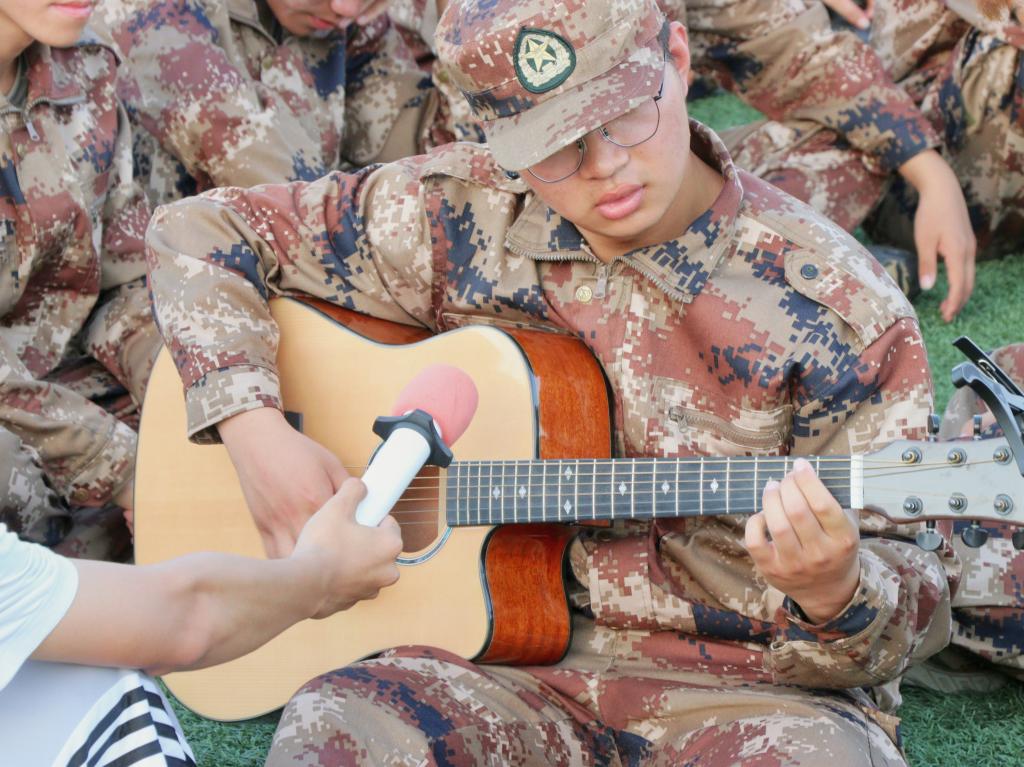 如火如荼的军训生活也必然少不了休闲时光里的莞尔歌声。夕阳下,同学们迎着晚风,沉浸在娓娓动听的旋律中,质朴的笑容为校园增添了一抹又一抹朝气。