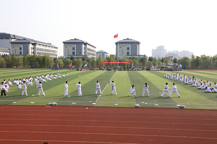 学校各社团经过一个多月的排练,为本次开幕式献上了精彩纷呈的演出。校歌手协会以一首《超越梦想》用动人的歌喉勾勒了我校健儿自强不息、超越自我的拼搏历程。行在征途瞻远望,奔向未来在出发,优美的歌声激励安科学子传承和发展新时代体育文化精神,立鸿鹄志,奋发有为,在追逐梦想的道路上不断超越自我;朗诵节目《强国有我》展现了中华民族在中国共产党的领导下,从站起来、富起来到强起来的伟大历程;武术队表演强劲欢乐的音符在操场回荡,踢、打、摔各种矫健的身姿,焕发出青春的光彩,展现了安科体育文化的魅力,诠释了中华民族自强不息、矢志奋斗的顽强精神。校健美操队、跆拳道队、大学生街舞协会也为本次开幕式献上了精彩的演出。