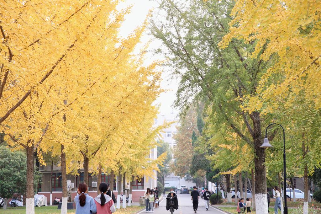 已至深秋,安科校园四处的银杏呈露出令人炫目的金。片片飘洒下的落叶,顺风贴着地面卷动,铺成一地锦绣,在日渐萧瑟的大地上旗帜一般鲜明地辉煌着。老人们闲坐在这金黄中沐浴着冬日暖阳,回忆着曾经的青葱岁月;孩子们在银杏叶上追逐着,欢笑声伴着银杏叶的窸窸窣窣声如同秋之交响乐。郭沫若先生曾赞叹银杏树风骨盖世,乃“东方的圣者”。银杏树的端直、刚劲,象征着中华儿女葱茏而又庄重、嶙峋而又洒脱、高雅而又平易的人格和高洁品性。希望安科学子一同努力,不负社会各界期望,如同银杏一般,成为自信刚强的祖国栋梁之材!(特约通讯员:金银龙 摄影:丁翊峰 吴丽君 周怡婷 郑仲辰 张昕颖 程思思 户雨露 王伟杰 张晨 孙锦杨 审核:姚文均 编辑:张威)