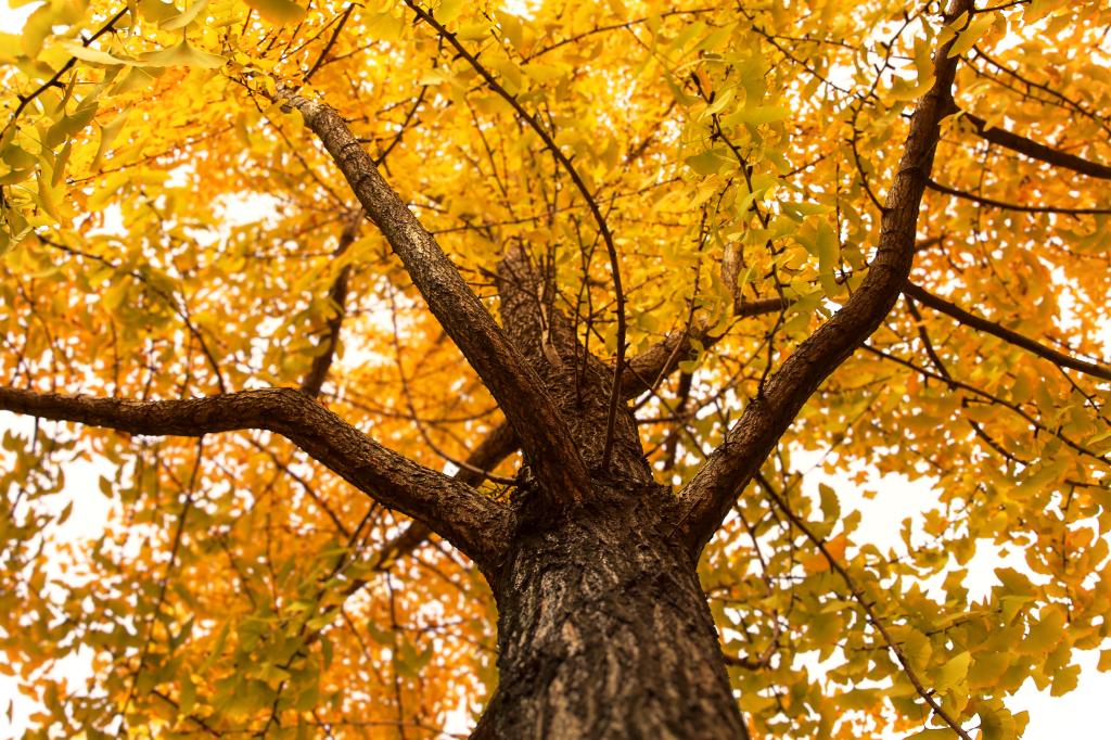 虽说立冬已至,但秋意未尽,银杏叶仍是这个季节最美的风景。你瞧,天穹正与银杏凭肩私语呢!