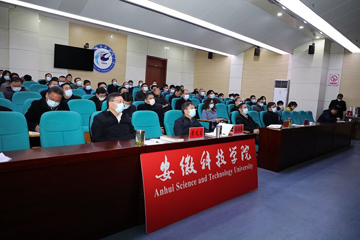 12月1日下午,学校在凤阳校区会议中心第一报告厅视频分会场,组织参加省委教育工委举办的学习贯彻党的十九届六中全会精神省委宣讲团宣讲报告会。省委宣讲团成员,安徽中医药大学党委书记、教授王先俊同志作学习贯彻党的十九届六中全会精神宣讲,省委教育工委副书记、教育厅厅长赵振华在主会场主持报告会。校党委书记蒋德勤,党委副书记、校长李震,党委委员、副校长黄远友,党委委员、副校长李升和,校党委理论学习中心组成员,职能部门负责人、各教学院(部)党政主要负责人,马克思主义学院专职思政课教师和辅导员、师生代表参加视频会议。