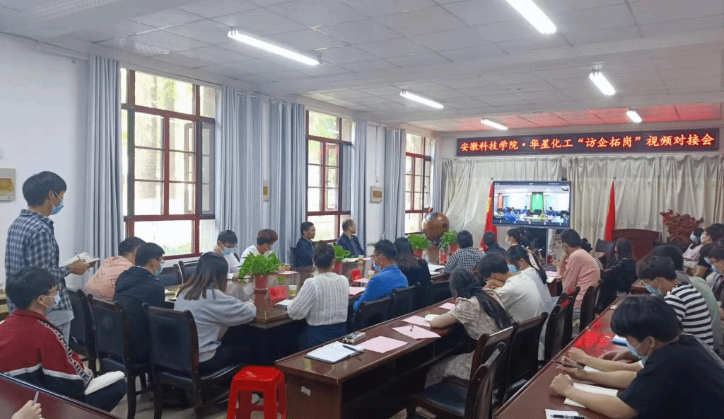 为贯彻落实教育部、省委省政府中国足彩网高校毕业生就业工作的决策部署,实现人才培养与就业岗位深度对接,助力毕业生疫情防控常态化背景下高质量就业,5月3日, 农学院在学院会议室举办“访企拓岗”视频对接会。校党委副书记、院长李震出席,招生与就业工作处副处长何晓冬,农学院党政领导、植物保护系毕亚玲等教师代表和毕业生代表参加会议,参会企业安徽华星化工有限公司党委书记、总经理颜泽彬,常务副总经理李文明以及相关职能部门负责人、就职于华星化工的我校校友代表等在和县、合肥等地视频出席会议。