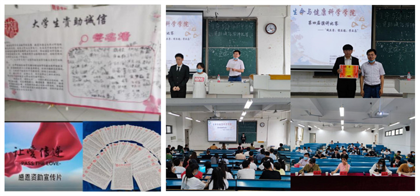 丰富活动实践形式,增强宣传教育实效性。学校始终坚持践行资助育人“始于资助,成于育人”的理念,积极引导学生自觉守信践诺,促进学生全面发展。学生资助管理中心举办“至诚则成,立信于行”诚信教育微视频大赛,同学们紧紧围绕着个人成长、资助政策、感恩教育、学风建设、考风考纪、金融风险、征信风险等方面内容,畅谈对诚信的理解,倡导共同为诚信社会、文明校园建设而努力,充分展示了当代大学生的青春风采;各二级学院结合专业特色积极组织开展演讲比赛、征文比赛、知识竞赛、金融知识讲座、诚信宣誓和诚信签名等活动。学生在活动中感悟,在活动中成长,提升了诚实守信、爱国爱校、勤奋学习的思想自觉和行动自觉。
