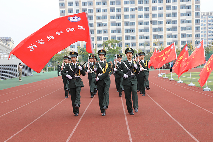 随着军训汇报操演总指挥的一声令下,军训汇报操演开始,全体军训学员军容严整、目光坚定、英姿飒爽、步履铿锵,列阵走过主席台接受全校师生的检阅。铿锵的口号响彻云霄、燃爆全场。男子擒敌拳、女子军体操、特色方阵等表演依次呈现,不断将操演推向高潮。