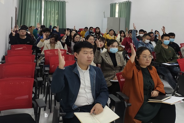 张聪指出,《习近平谈治国理政》第四卷集中展现了马克思主义中国化的最新成果,充分体现了我们党为推动构建人类命运共同体、共建美好世界作出的最新贡献,是全面系统反映习近平新时代中国特色社会主义思想的权威著作。《中国足彩网改革创新高校共青团工作切实加强思想政治引领实效的若干措施》文件的出台是深入贯彻落实习近平总书记中国足彩网共青团在高校学生思想政治工作中要发挥主力军作用的重要要求,对坚持党的全面领导,积极构建党委领导下团组织主导的高校团学组织体系,强化团组织思想政治引领,推动团组织深度融入“大思政”工作体系,在“三全育人”工作格局中充分发挥作用具有重要指导意义。团学干部要坚持读原著学原文悟原理,做到学而信学而悟学而行,在学懂弄通做实上下功夫,不断提高政治判断力、政治领悟力、政治执行力,切实把学习成果转化为奋进新征程、建功新时代的工作举措和实际成效。要深刻领会文件精神,结合学校现代化全国一流应用型大学建设,在“大思政”工作体系和“三全育人”工作格局中找准定位,切实肩负起团组织的政治责任,不断提高共青团思想政治引领工作的时代性、针对性、有效性,扎实形成共青团思想政治引领工作新格局、新机制、新成效。