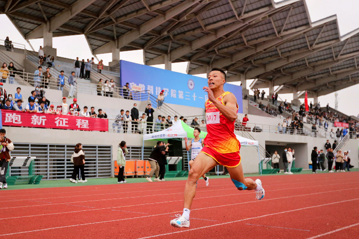 风扬起细小的颗粒折射出光,而田径运动员们是赛道上唯一的焦点。时间在流逝,赛道在延伸,心脏在跳动,热血在沸腾,运动员们如闪电般掠过带起阵阵秋风,他们向着眼前的胜利狂奔,热血在他们胸中沸腾,辉煌在他们脚下铸就。