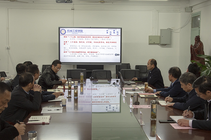 蒋德勤在讲话时就加强科研团队建设和国家基金项目申报工作作了强调。他首先对机械工程学院通过整合优化现有资源,为自主建立的科研团队提供物理空间的经验做法和团队建设取得的成绩,给与了充分肯定,并鼓励各学院学习机械工程学院的做法,以党的二十大精神为指导,坚持科技是第一生产力、人才是第一资源、创新是第一动力,不断加强科研团队建设,构建结构合理、方向精准、目标明确的创新团队,谱写科技创新新篇章。他强调,全校上下要牢固树立学科建设的龙头地位。一是要重视学科建设,充分认识学科建设的重要性,各学院领导班子要认真研究,增强责任感和使命感,不断强化学科建设龙头地位,彰显办学实力和水平;二是要研究学科建设,遵循学科建设的发展规律,在凝练方向、做好规划、组建团队、搭建平台、提供服务上下功夫、见实效,不断提高学科建设质量;三是要推进学科建设,明确学科建设带头人,凝心聚力,党政同责,盘活存量,做强增量,打造一支数量、质量与结构合理的学科团队,建立健全学科建设机制。