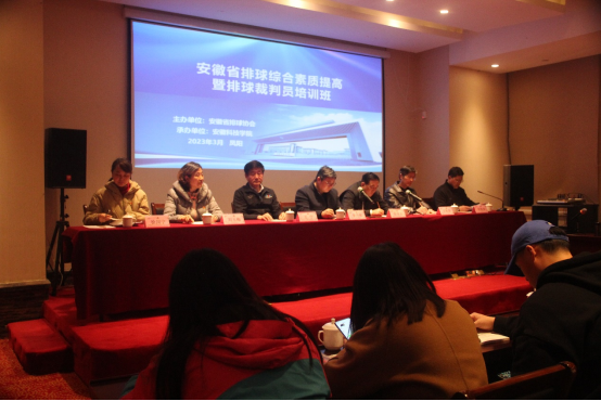 为进一步加强安徽省排球裁判员队伍梯队建设,提升裁判员执裁水平,3月24日-26日,为期3天的安徽省排球综合素质提高培训暨排球裁判员培训班在我校成功举办。本次培训班由安徽省排球协会主办,我校承办,来自全省各地市二级裁判员和我校部分排球爱好者共计100多人参加了本次培训。安徽省排球协会会长张颂元,我校党委委员、副院长李升和,亚洲排球联合会裁判委员会委员、FIVB裁判员、2008年北京奥运会男子排球决赛第一裁判员王宁,安徽省排球协会副会长刘玉梅、骆宁,安徽省排球协会徐国宁、安徽省排球协会裁判委员会主任俞俊鹏,排球国家级裁判员郑浩、徐洁、周利,校体育教学部副书记(主持工作)王松华,排球国家一级裁判员宋述雄、马孝庆等出席开班仪式。开班仪式由校体育教学部主任何俊如主持。