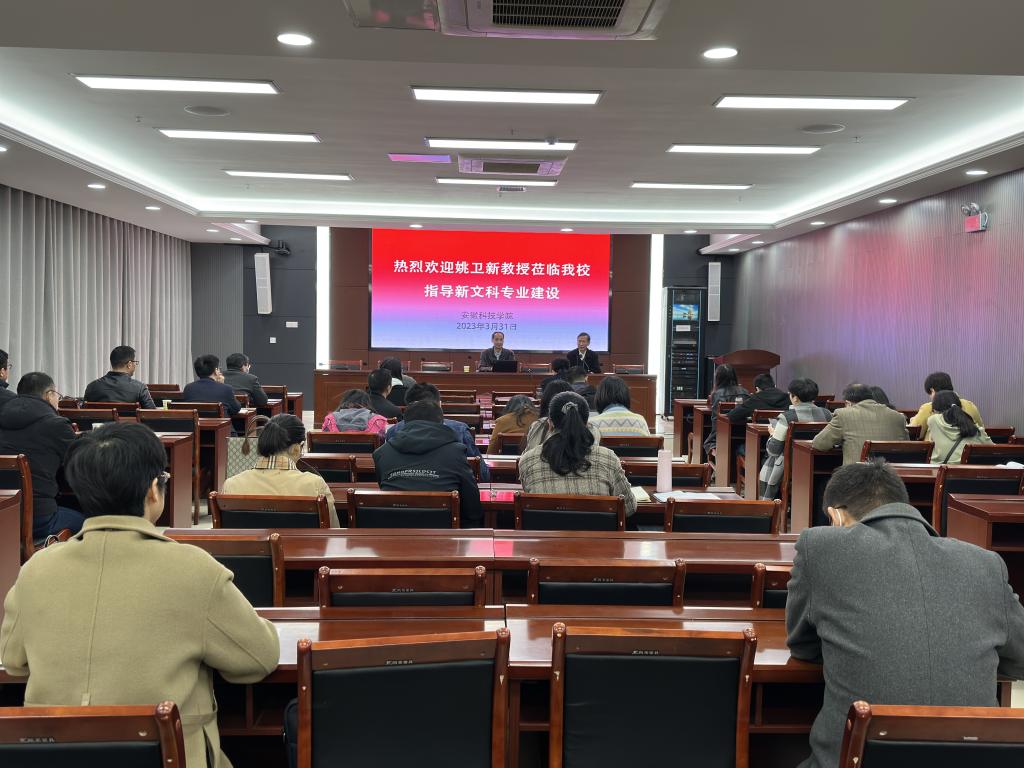 李震代表学校对姚卫新教授莅临我校开展新文科教育专业认证工作指导表示热烈欢迎。他指出,当前我校上下正紧紧抓住更名大学纳入安徽省“十四五”高校设置规划的难得机遇,在向更名大学的路上努力奋斗。要实现一流应用型大学的建设目标,需着力提升专业建设和发展水平。他强调,专业认证既是高校服务地方经济社会发展和提高人才培养质量的内在要求,也是应用型大学发展的战略选择;既是学校推进专业建设与改革,提高专业综合实力,提升人才培养水平的重要抓手,也是高校践行“以本为本”理念、实现内涵式发展的必由之路。他要求,学校上下要以本次新文科教育专业认证专题讲座为契机,进一步深化认识,明确责任,完善工作机制,强化时间观念,做好新文科教育专业认证工作时间表,对标专业认证标准,抓好、抓实新文科教育专业认证工作。他希望,借助专业认证工作的不断推进,能不断强化专业内涵建设,使学校的人才培养模式更加科学,教师教学能力不断提升,学生学习质量持续提高,教学质量保障体系更加完善,促进学校教育高质量发展。