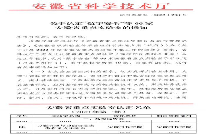七、全国首个!功能农业与功能食品安徽省重点实验室获认定