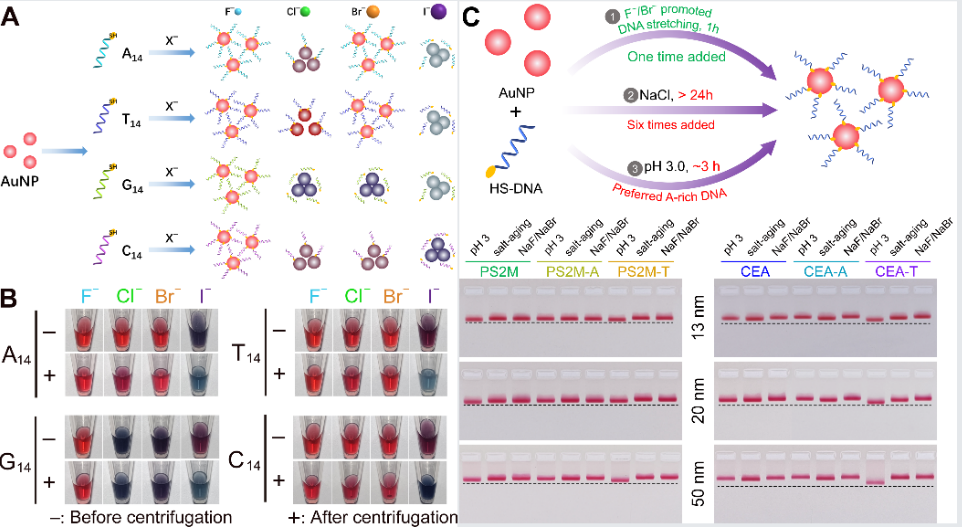 此外,该方法对DNA碱基无特殊要求,能够更好地缓解基于pH 3的方法对A-rich的依赖,避免pH调节或使用任何缓冲液,从而简化了后续基于DNA / AuNP的研究,同时也适用于不同粒径AuNP的修饰,为纳米生物技术、生物传感以及DNA定向组装等领域的应用做出重要贡献。(特约通讯员:袁鹏 审核:钱立生 编辑:李锦)