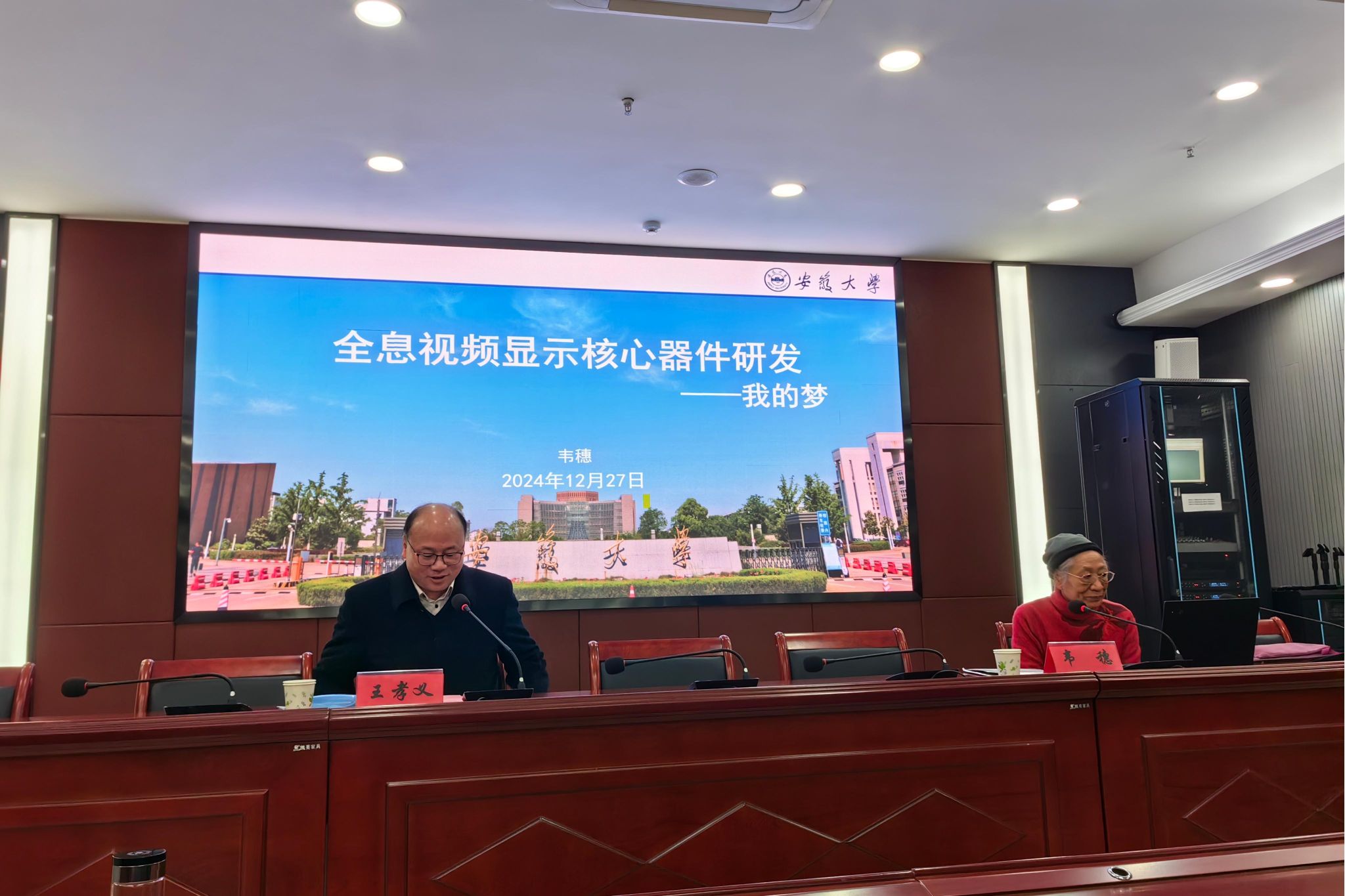 12月27日上午,安徽大学原副校长、博士生导师韦穗教授一行应邀来我校作题为“全息视频显示的核心器件——我的梦”的学术报告。报告会由校党委委员、副院长王孝义主持,电气与电子工程学院党政主要负责人和部分师生参加。