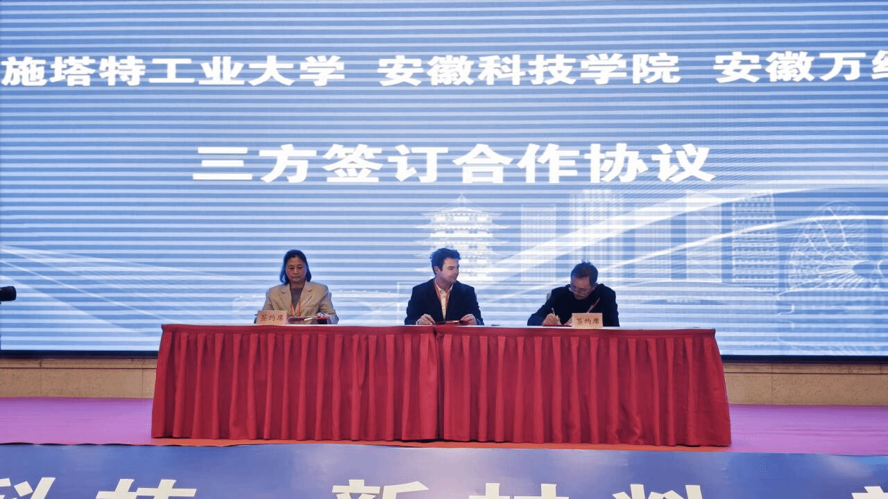 会上,我校化学与材料工程学院院长李子荣代表安徽科技学院与德国达姆施塔特工业大学、安徽万绿生态公司签订三方合作协议,将访学交流、人才联合培养等纳入无机非金属材料工程省级重点学科建设体系。接下来。两校将在学生联合培养、教师互访、学术交流等方面开展深度合作,不仅有助于提升学院学科影响力,更为学校高质量发展输送国际化人才提供了支撑。