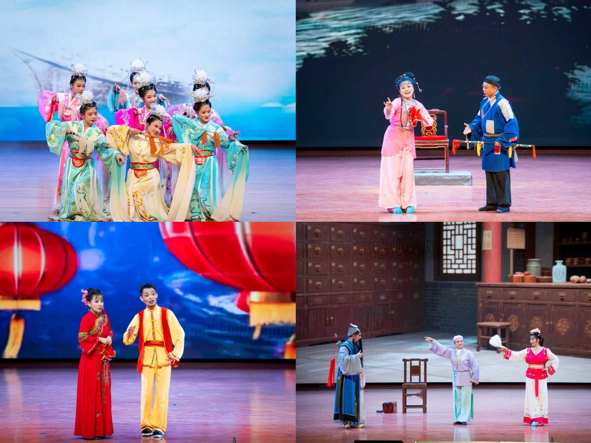 演出在经典喜剧《闹黄府》中热闹开场,丑角杨三笑以夸张诙谐的表演讽喻世态,引得满堂笑声。随后,《打猪草》中清新质朴的田园风情、《洞房》中细腻婉转的情感演绎、《鹊桥》中飘逸动人的仙凡之恋、《夫妻观灯》中热闹欢快的生活气息,以及《戏牡丹》中幽默机智的唱段对白,层层推进,引人入胜。演员们功底扎实、表演传神,将黄梅戏的浓郁乡土韵味与艺术感染力展现得淋漓尽致。