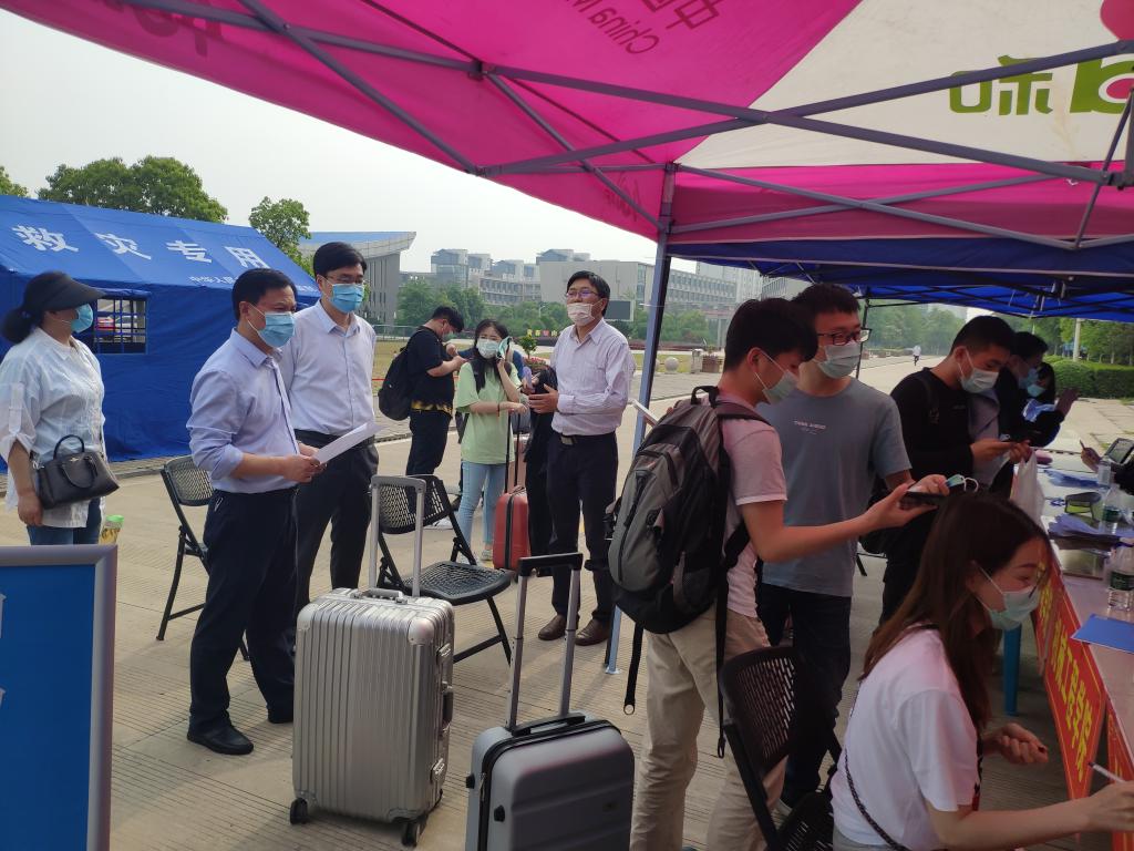 钱锐一行来到西区返校值班点,现场指导毕业生返校工作,了解学生返校情况,慰问值班老师,希望大家严格按照工作方案落实各项返校工作细节,确保返校工作顺利进行。