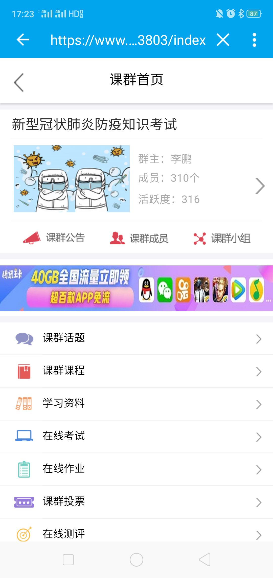 为了更好地帮助学生了解新型冠状肺炎的防疫知识,保护好自己及他人的生命健康,5月1日至20日,外国语学院学生易班工作站利用易班的课群模块开展以“共抗疫情 爱国力行”为主题的新型冠状肺炎防疫知识考试活动,学院17-19级全体学生参与。