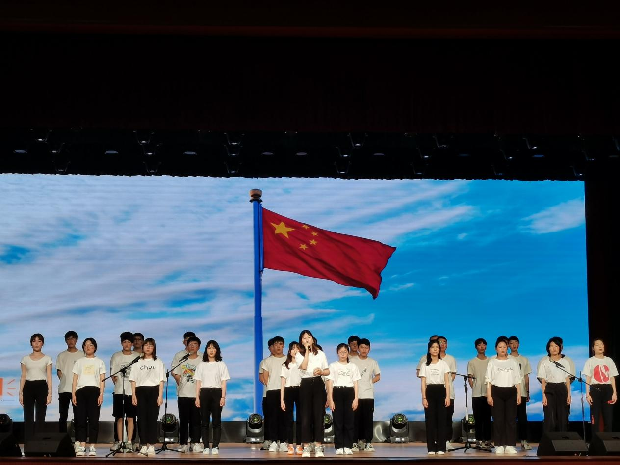 晚会接近尾声时,师生共同演唱《我和我的祖国》,“我和我的祖国,一刻也不能分割,无论我走到哪里,都流出一首赞歌……”,在指导老师的领唱下,全场六百余名学生齐声合唱,他们挥动自己的双手,脸上洋溢着灿烂的笑容,整个大礼堂变成了歌唱的海洋,将现场气氛引向高潮。