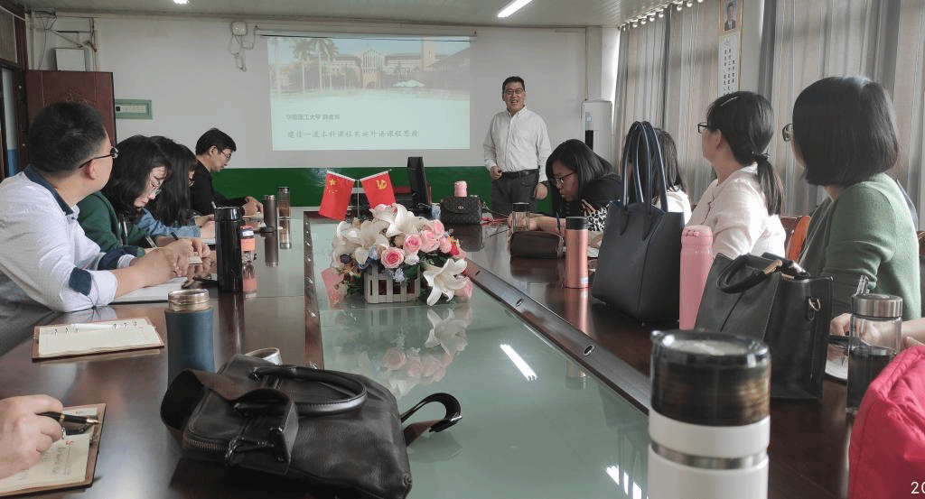 为加强和提升外国语学院一流课程申报和外语类课程思政建设等工作,5月14日下午,外国语学院特邀华南理工大学韩金龙教授来校举办“建设一流本科课程,实施外语课程思政”专题讲座,外国语学院部分教师聆听了报告,会后与韩金龙进行了现场交流探讨,报告会由外国语学院院长陈德用主持。