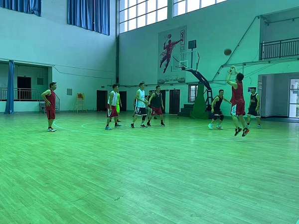 舒英杰代表校篮球协会欢迎消防救援大队篮球队来校开展篮球联谊活动,介绍我校教职工篮球活动情况。两队开展了篮球交流比赛,提升了篮球水平,促进友谊。