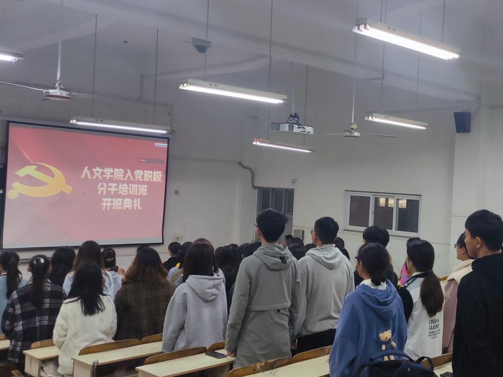 为推进落实党史学习教育工作,提升我院入党积极分子的政治理论素养和党性修养,10月20日中午,人文学院于求A103教室举办人文学院第55期入党积极分子培训班开班典礼。人文学院党委副书记李沙娜、编辑出版与汉语言文学学生党支部书记焦雪松、法学学生党支部书记方明旺参加了开班典礼。典礼由焦雪松主持。
