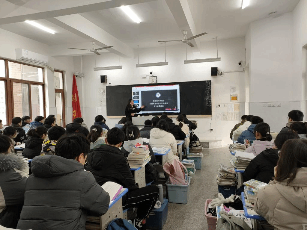 宣讲活动前,实践团成员向母校老师汇报自己在大学的学习和生活情况,并一同将喜报张贴在校园公告栏上。在高中班主任的组织下,组织高三多个班级开展“认识安科,奋进高三”的宣讲活动。通过多媒体讲解,深化同学们对安徽科技学院的整体了解;通过丰富多彩的校园生活引发学生们对安科校园的向往,通过专业的试验基地、设施齐全的教学楼展现安科扎实的科研、教学氛围。随后,队员们向同学们介绍了自己进入大学后的心路历程、成长蜕变和取得的成绩,耐心地回答了同学们在专业选择、院校报考和校园生活等方面的问题,并代表安科学长学姐向同学们发出了美好祝福和邀请。