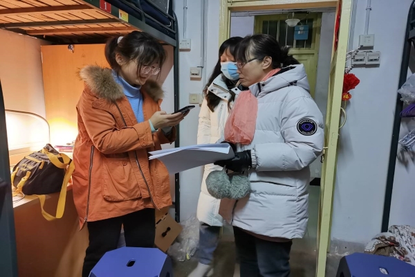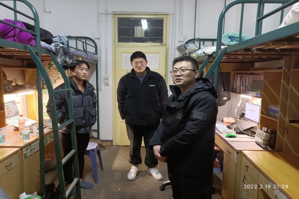 2月19日晚,学生返校第一天,外国语学院院长陈德用、党委书记蔡为青、副院长刘萍、党委副书记张海亮等党政领导及全体辅导员全员深入宿舍看望返校学生,并开展宿舍安全卫生排查。