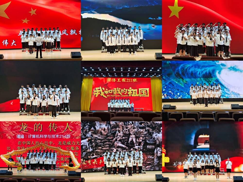 经过前期的认真筹划与准备,5月4前,各班级分批次在西辅楼报告厅进行现场录制。比赛录制现场,同学们激情澎湃、热情高涨。一首《唱支山歌给党听》唱出青年学子昂扬的斗志和奋发向上的决心;一首《我和我的祖国》表现了学生们热爱祖国的深厚情感,给观众以强烈的艺术感染;一首耳熟能详的《没有共产党就没有新中国》,点燃了观众的热情,歌颂了共产党的丰功伟绩;《我爱你,中国》《我们都是追梦人》热情奔放、豪情壮志、一遍遍抒发着对祖国的歌颂与赞美;《我的中国心》《歌唱祖国》唱出了学生们对祖国的深情赞美;《龙的传人》将中华儿女最真挚的情感与歌声交织在一起,唱出了中国人的铮铮铁骨;《红旗飘飘》刚强有力、满怀激情,将比赛推向高潮。同学们用嘹亮的歌声唱出了对党和祖国的热爱与崇敬,更唱出了新时代青年积极向上的精神风貌和对未来美好生活的无限憧憬,抒发了为国奋斗的爱国情怀!