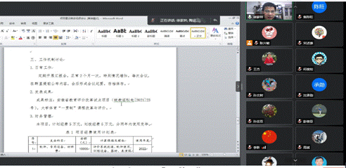 5月11日晚,体育教学部通过线上会议形式召开了《大学体育“一贯制”课程改革与评价》第2次工作汇报暨课题组第1次工作会议,会议主要围绕项目进展汇报、项目任务分配、工作机制等事项展开讨论,体育教学部党总支书记何俊如、体育教学部主任孙志双及课题组人员参加了会议。会议由体育教学部主任孙志双主持。