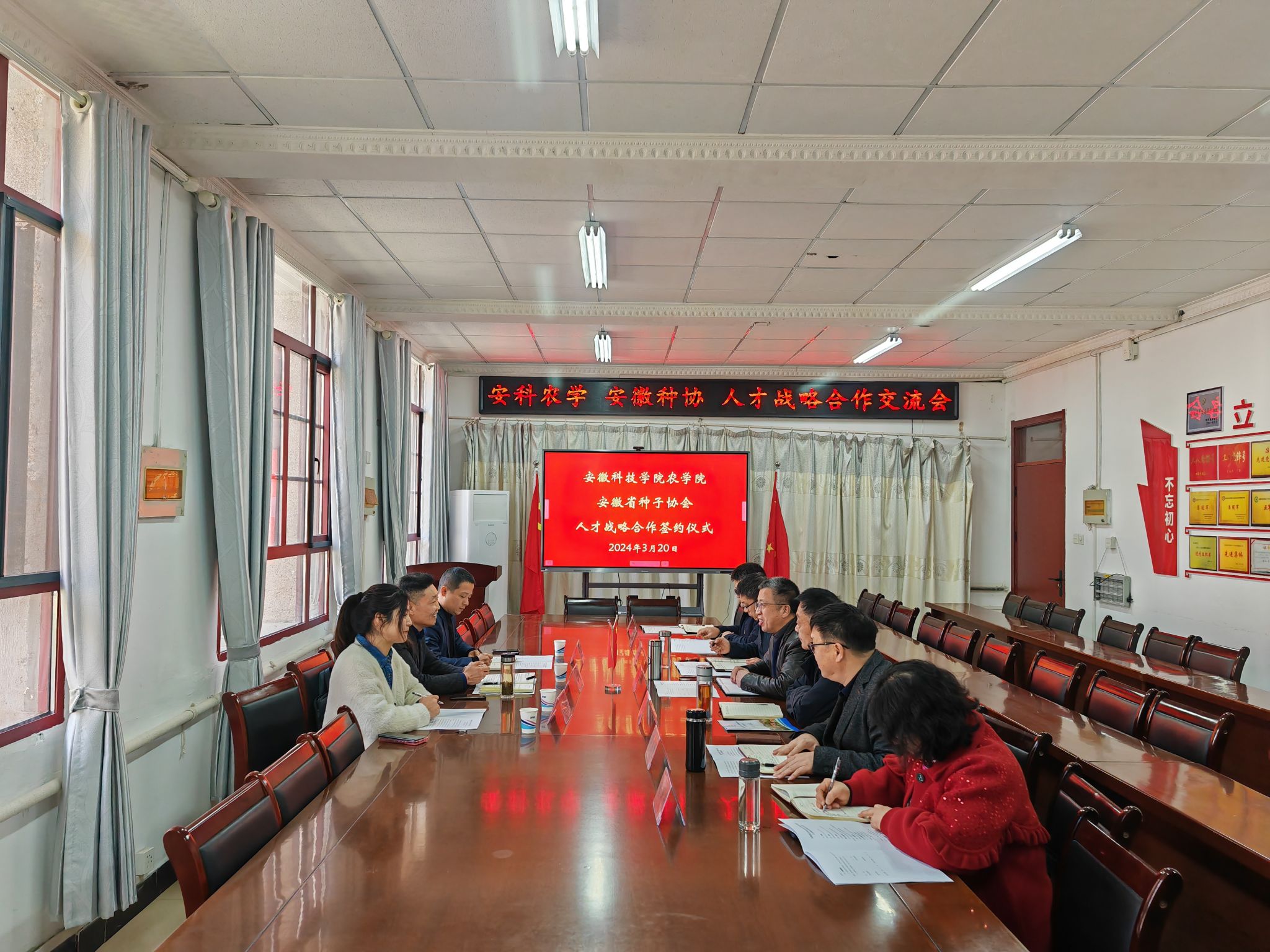 农学院院长崔广荣对安徽省种子协会一行来校交流合作表示欢迎。崔广荣简要介绍了学校、学院的基本情况,并就学院的专业设置、师资队伍、人才培养特色作出重点推介。叶飞介绍了安徽省种子协会的基本情况,对学院培养的农科人才尤其是种业人才给予高度评价。他指出,我校是一所办学历史悠久、文化底蕴深厚、多学科协调发展的高水平应用型大学,协会时刻以团结广大会员,服务种子事业为根本落脚点,发挥政府与企业、企业与高校的桥梁纽带作用,深化校企合作,聚力人才发展,打通校企合作最后一公里,为安徽省乡村振兴贡献应有的力量。束晶晶介绍了种业互联网服务平台及人才求职招聘专栏简况。