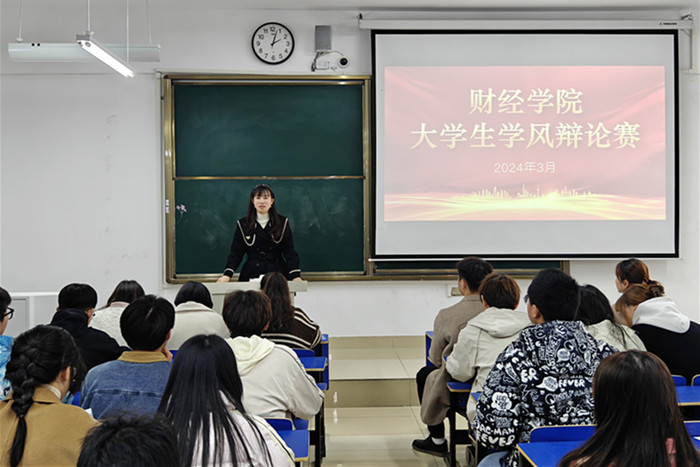 3月20日起,财经学院在尚行楼举办多场大学生学风建设辩论赛,全体23级新生班级参赛。