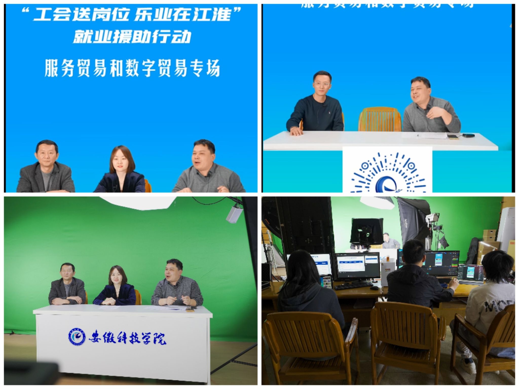 3月22日下午,“工会送岗位乐业在江淮”就业援助行动直播招聘会——服务贸易和数字贸易专场活动在我校凤阳校区直播间举办。