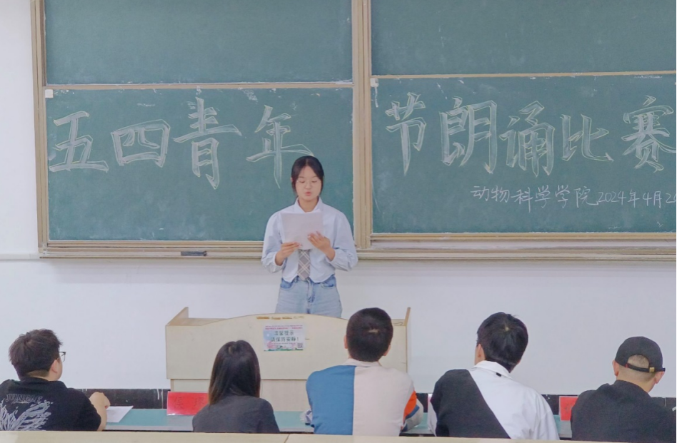 4月24日下午,动物科学学院学生会在求知楼A101举办五四青年节朗诵比赛活动。学院有关教师全程指导。
