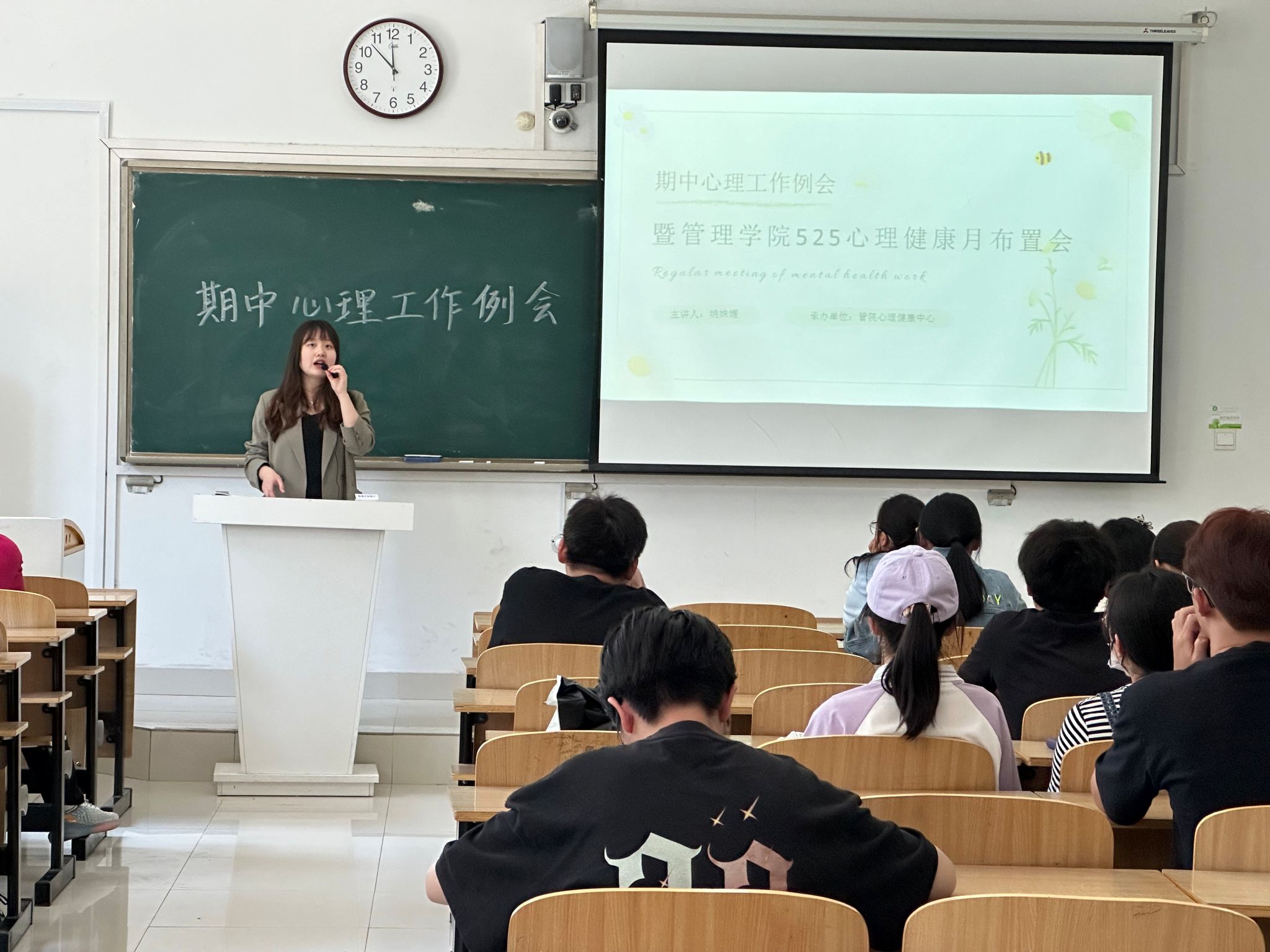 为进一步推动学院大学生心理健康教育工作顺利开展,促进大学生身心健康成长,5月10日中午,管理学院在致知楼C107教室召开期中心理委员例会暨“5·25”心理健康月工作布置会,学院全体心理委员参加会议,会议由专职辅导员姚姝媛主持。