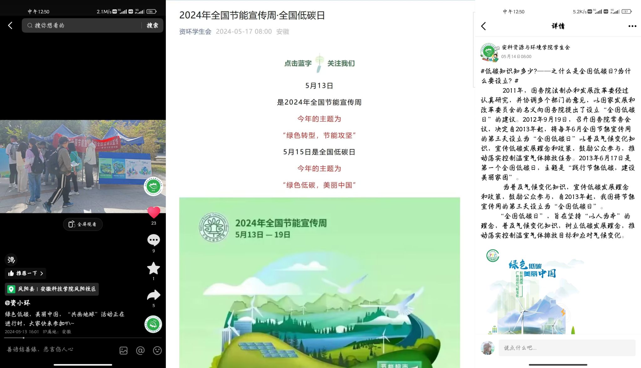 通过学院抖音、官网、易班、官Q、微信公众号等全媒体矩阵平台,围绕全国节能宣传周,推送“知识科普”“易班推文”“公众号文章”“抖音宣传视频”,向同学们宣传环保知识,从而,加强同学们的环保意识,引导同学们养成低碳环保的习惯。