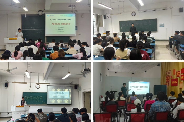会上,各班辅导员及学习委员带领班级成员认真学习了《中华人民共和国教育法》《中华人民共和国刑法(修正案九)》《国家教育考试违规处理办法》《安徽科技学院学生手册》中有关考风考纪的内容。向学生传达了诚信考试的重要性和必要性,让学生知悉考试违纪、考试作弊的严重后果,希望同学们严守考风考纪,认真备考,诚信考试。会后,同学们签订了诚信承诺书,有效强化了考生诚信考试意识。