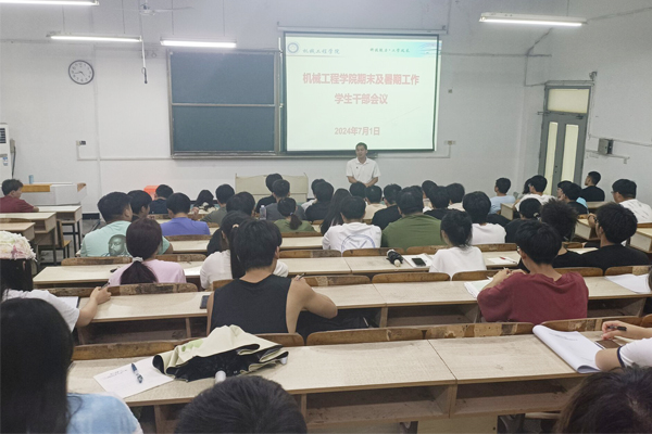 7月1日下午,机械工程学院在求知楼A101召开期末及暑期学生工作布置会。学院党委副书记张程出席并讲话,全体非毕业班班长及团支书参加会议。会议由专职辅导员朱香银主持。