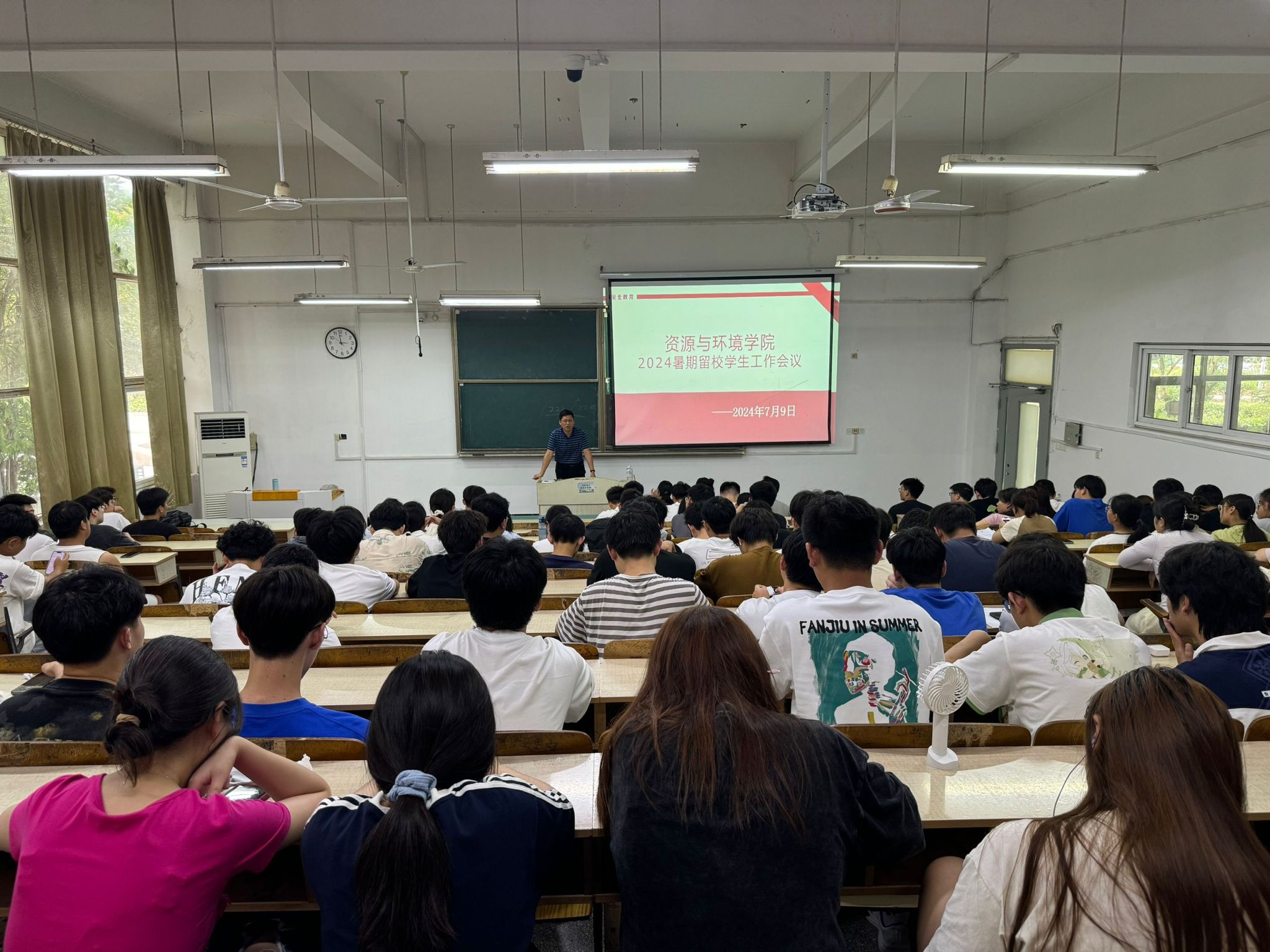 为加强暑期留校学生的服务管理工作,切实维护好校园安全稳定,7月9日下午,资源与环境学院在求A101召开2024年暑期留校学生工作会议。学院党委副书记沈树周出席并讲话,学院有关教师和全体留校学生参加会议,会议由党政办主任吴国良主持。