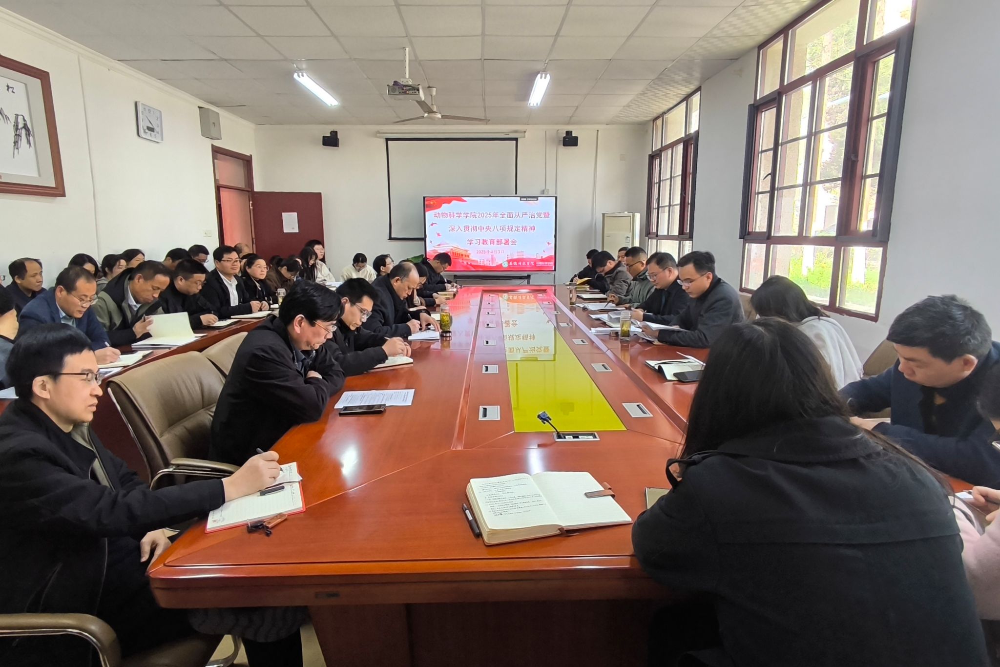 4月3日,动物科学学院在学院会议室召开2025年全面从严治党暨深入贯彻中央八项规定精神学习教育部署会,学院党政领导及全体教职工参加会议,会议由学院党委书记甘宗平主持。