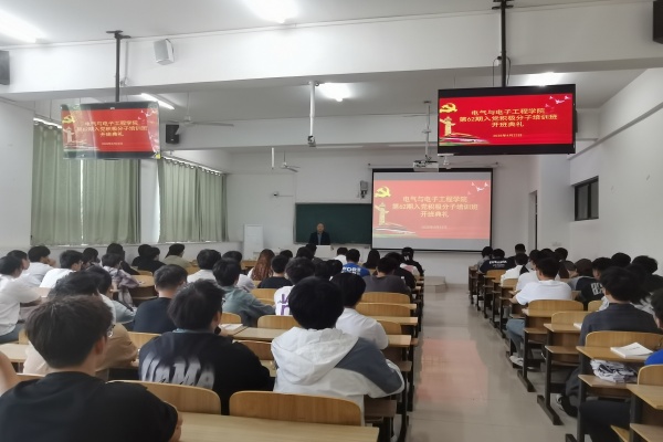 4月23日,电气与电子工程学院在致C108教室举行了第62期入党积极分子培训班开班典礼。学院党委副书记尚磊,学生党支部书记和参加本次培训的全体学员、指导党员参加了典礼,典礼由正科级组织员陈慧中主持。