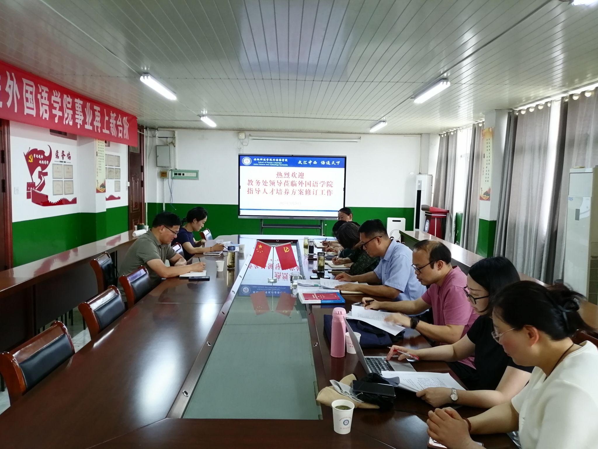 5月20日下午,外国语学院在学院会议室召开外国语学院2025版人才培养方案修订交流会。教务处副处长高青海,教研科科长高尚老师莅临指导,学院党政领导,各专业负责人和教研室主任参加交流会,会议由学院院长刘萍主持。