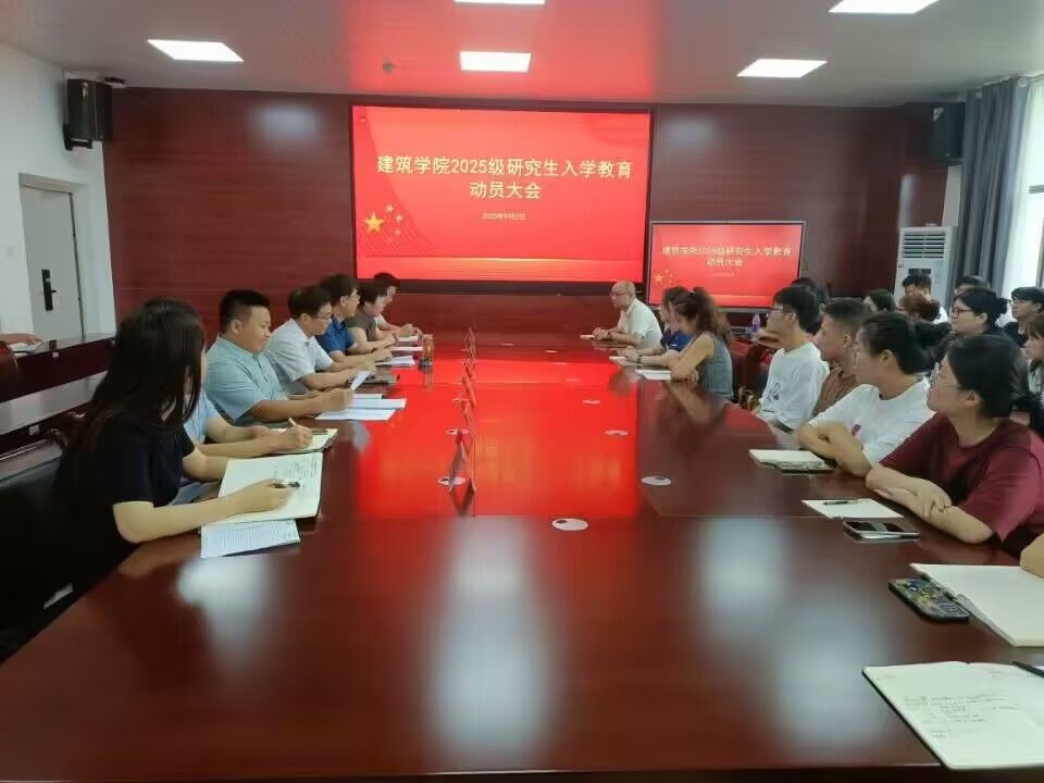 9月2日上午,建筑学院在尚行楼A301召开2025级研究生入学教育动员大会,学院党委书记傅友福,副院长吴伟东、张伟,学院有关教师及全体2025级研究生参加本次大会,会议由党委副书记谢宜勤主持。