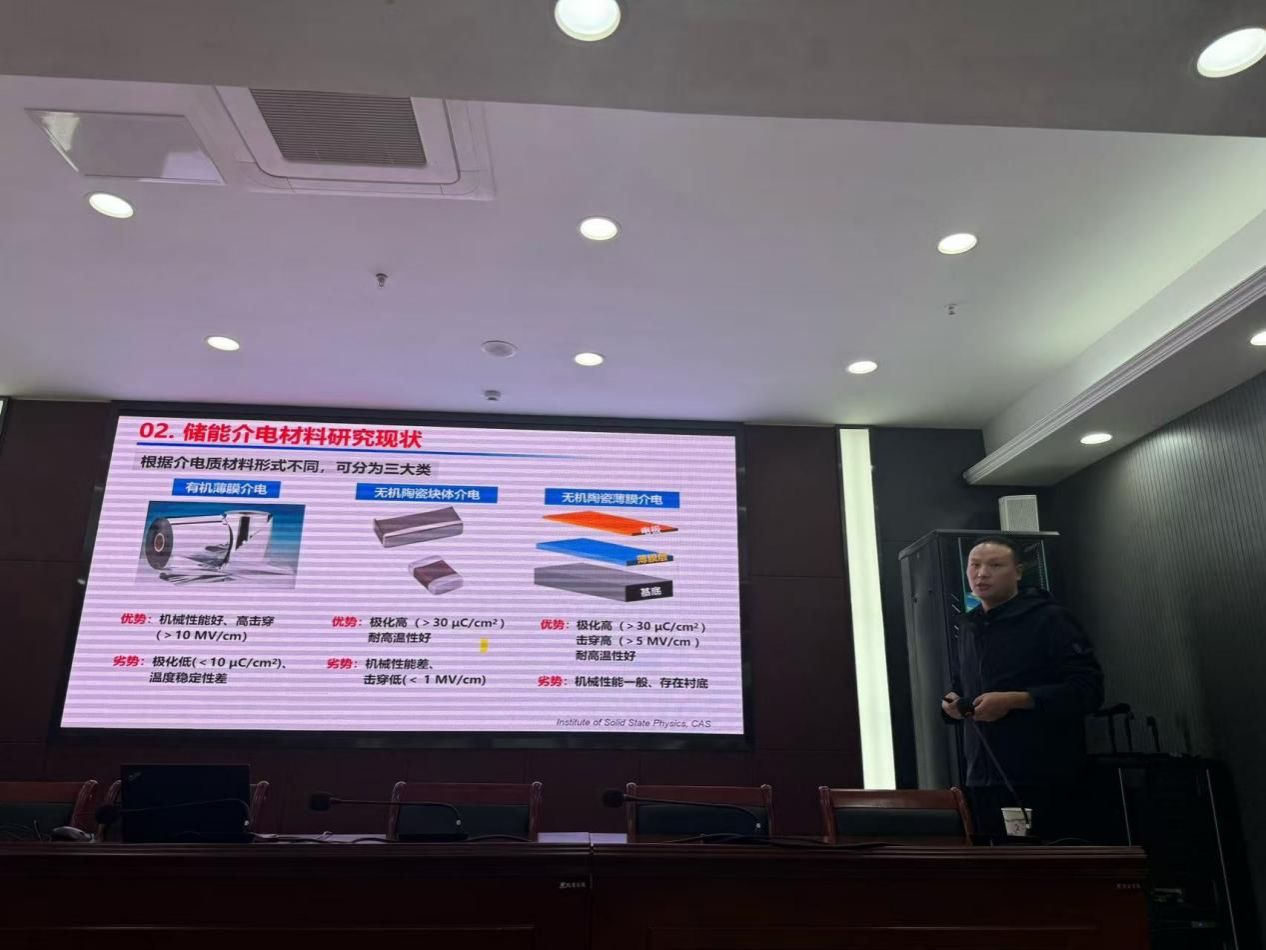 11月7日,中国科学院合肥物质科学研究院研究员、博士生导师杨兵兵在学院作了题为“高功率脉冲电介质电容器”的学术报告,分享了团队通过对材料的多维度结构设计,发展一系列高性能电介质体系,实现储能性能大幅提升的研究成果。他还介绍了基于这些材料体系,构建了小尺寸、大容量的新型电容器件模型,以及多功能、柔性自支撑电容器件模型,为相关领域的技术突破提供了新的思路与方向。