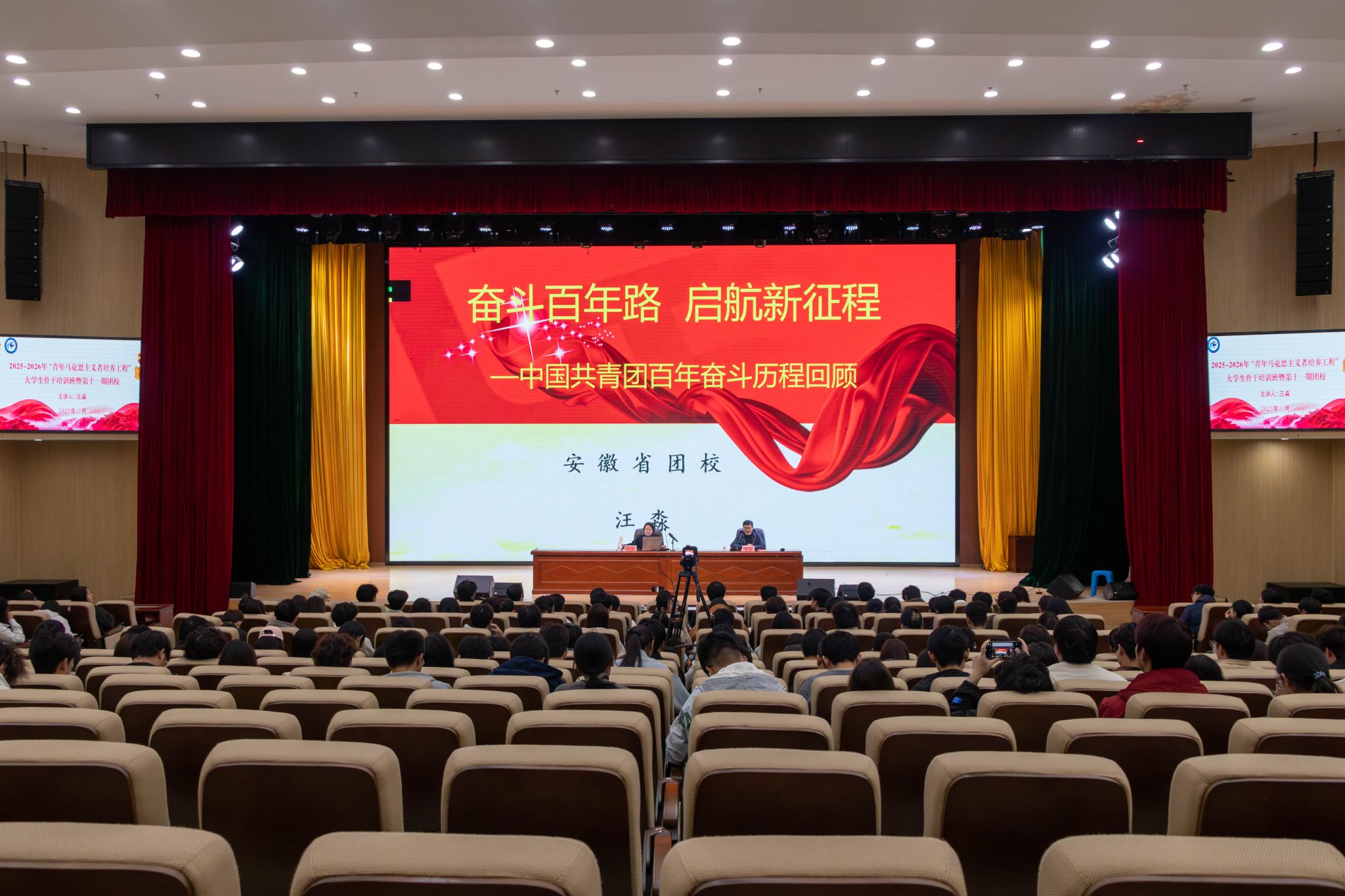 11月12日下午,我校青年马克思主义者培养工程培训班第二场专题报告会如期举行。安徽省团校基层团建与基础团务教研组组长、安徽省青少年研究会青运史专委会副主任汪淼受邀主讲,以《奋斗百年路 启航新征程 —— 中国共青团百年奋斗历程回顾》为题,为广大学员带来一场深刻的思想洗礼与历史熏陶。