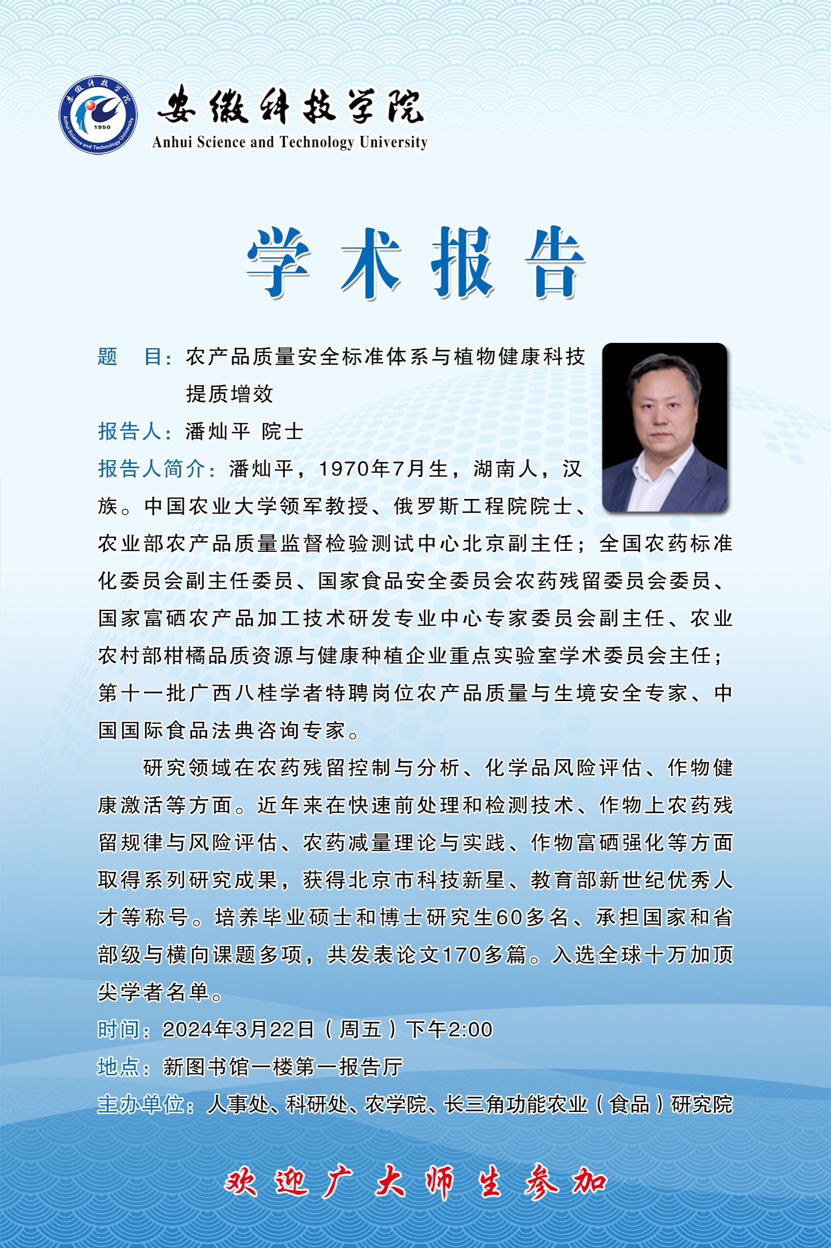 潘灿平院士学术报告-农产品质量安全标准体系与植物健康科技提质增效